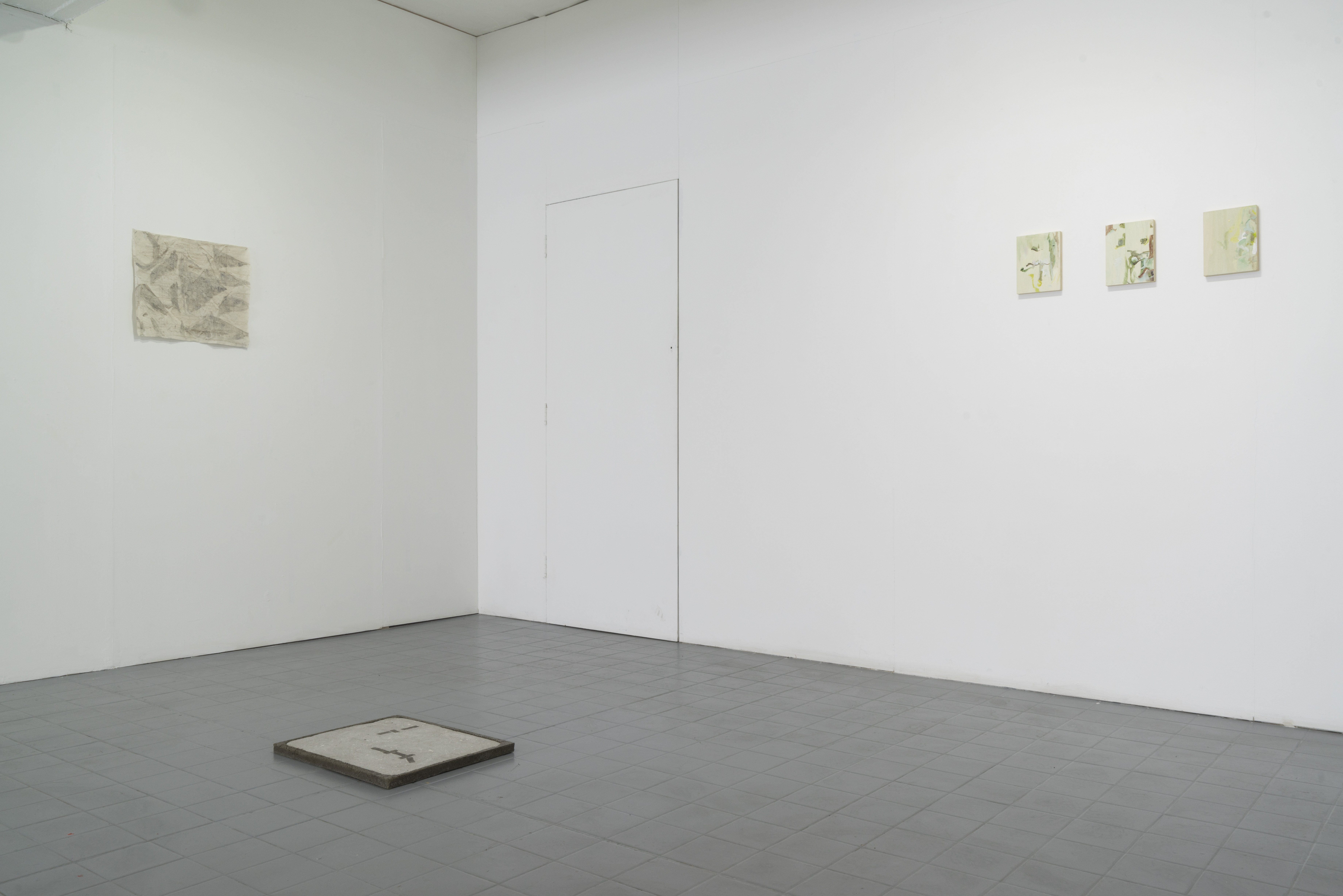 Sharing a material-driven approach, particular attention is paid to touch, surface, colour and arrangement. Materials from the artists’ everyday surroundings are selected for their specific physical and pictorial qualities– concrete, mud, biodegradable plastic packaging or discarded laptop screens. The magnification of these qualities draws attention to the act of looking and questions the way we touch and experience the world. Muted tones reminiscent of the palette of Piero della Francesca hint at times of transition within the natural world, just as the works on display move from one visual language to another.